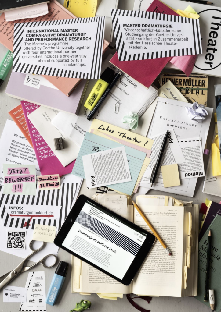 Die Theaterwissenschaft am Institut für Theater-, Film- und Medienwissenschaft der Goethe-Universität bietet in Kooperation mit der Hessischen Theaterakademie (HTA) zwei Dramaturgiestudiengänge an: